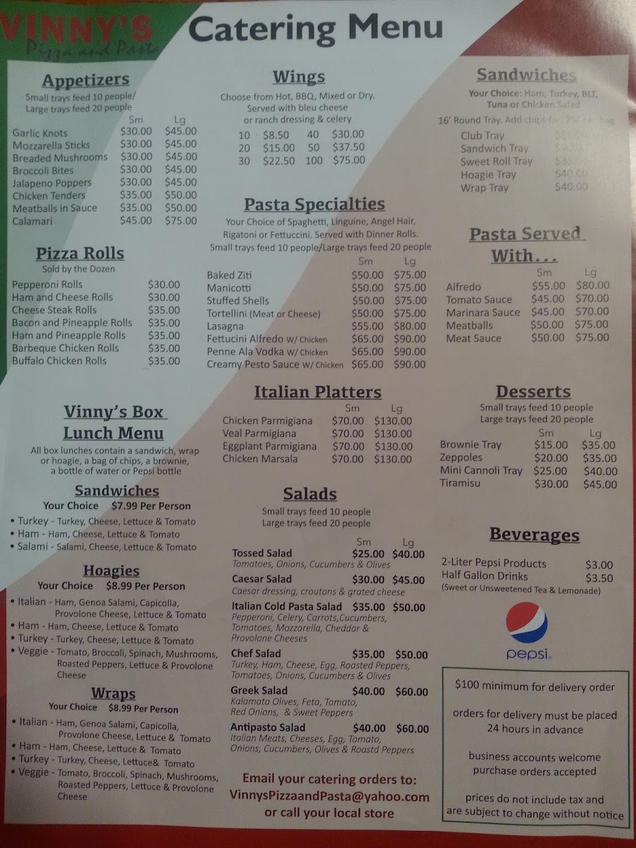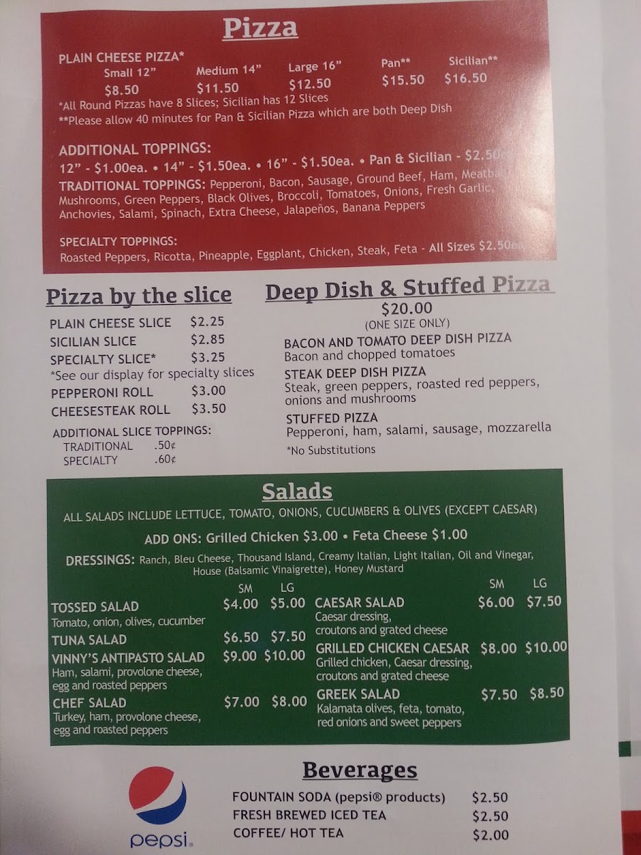 Yet, the overall sentiment remains positive, as enthusiast Sandra Spiker affirms it as her favorite spot for a classic slice of cheese or a delicious veggie pizza. Customers appreciate the warm, community-oriented dining experience, making it a go-to destination for families and friends alike. Whether you're dining in with a large group or opting for takeout, Vinnys Pizza and Pasta aims to excel in both service and taste.